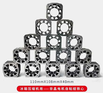 技术引领,赋能“双碳”战略与产业升级 宁波鸿达研发的非晶电机自粘结铁心,相较于传统硅钢电机,具有更高功率密度、更轻体积、更低涡流损耗和更高运行效率的显著优势。被国内外多个著名冰箱压缩机企业测试验证、结果表明非晶电机比硅钢电机效率提高3%~5%,为整机满足日益严格的IEC及中国新能效标准提供了成熟可靠的技术方案。若全球电机能效提升2%,相当于节省24座核电站产生的能量。宁波鸿达的这项创新,正是为实现国家“双碳”战略目标注入的一股强劲动力。非晶电机可广泛应用于电动汽车、电动飞机、无人机、人形机器人、冰箱、空调、吸尘器、电吹风、高速电机等领域。